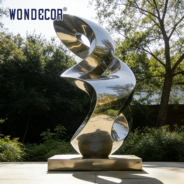 이 "무궁무진의 본질" 스테인리스 스틸 조각상은 유동적인 무한도 상징 형태로 야외 풍경과 상업용 공간에 이상적인 예술 설치입니다.고도로 닦은 거울로 가공된 스테인레스 스틸로 제작된자연광 아래 주변 녹색과 천장등을 반사하여 환경과 함께 변화하는 동적 빛과 그림자 효과를 만들어내는 것뿐만 아니라하지만 또한 뛰어난 날씨 저항성도 갖추고 있습니다., 그것은 최소한의 유지 보수와 함께 수십 년 동안 야외에서 밝고 반짝이는 모습을 유지합니다. 그것의 미니멀리즘 흐르는 라인은 자연 생태적 설정과 완벽하게 조화,무한의 예술적 의미를 전달하면서 눈에 띄는 시각적 초점으로 봉사합니다., 순환성, 그리고 활력.
